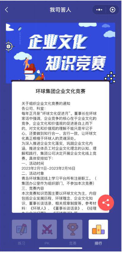 ——青島環(huán)球集團企業(yè)文化線上競賽圓滿舉辦