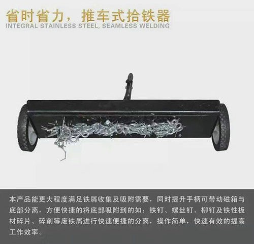 強磁吸鐵車可自動撿拾地面鐵粉或鐵器物件。適用于機械加工廠、選礦廠、球團廠、燒結廠、鋼鐵廠,還可在沙灘、沙漠、選拾鐵礦石、鐵礦粉,總之使用廣泛,利國利民。