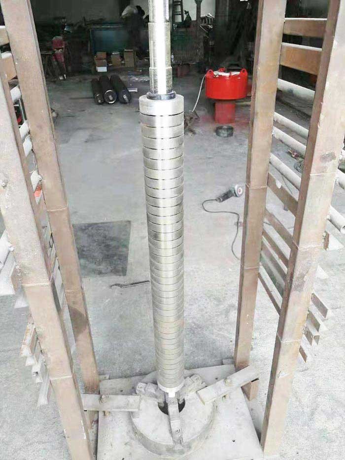 由高強磁釹鐵硼組成磁系,磁力高達10000GS-17000GS,可做成直徑100、直徑134、直徑150、直徑160、直徑220。長度任意定。